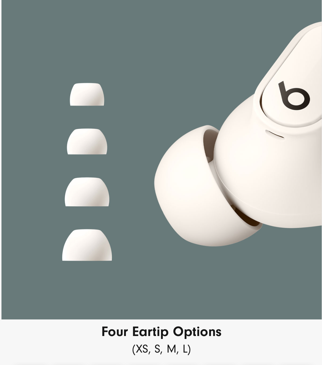 - Silicone ear tips with four size options — XS/S/M/L